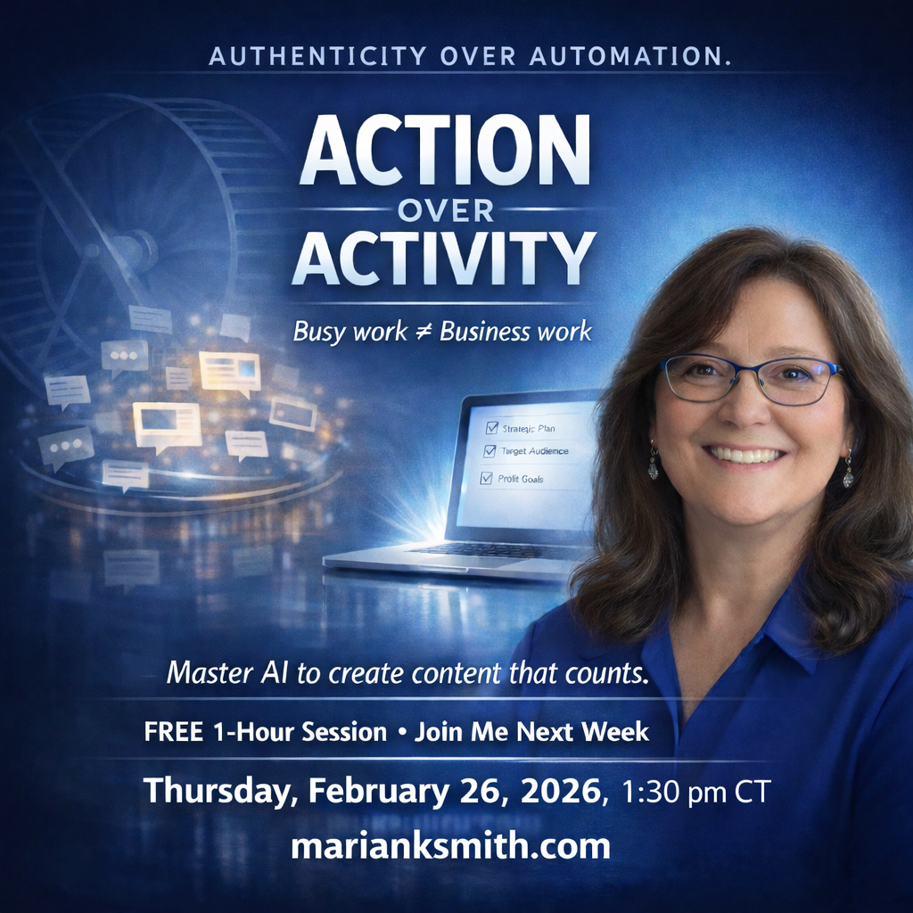 Join me next week for a FREE One-Hour session and we will dive into creating authentic content that counts.
